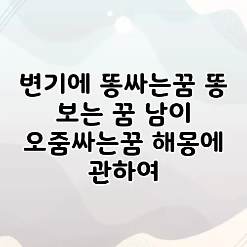 변기에 똥싸는 꿈, 똥 보는 꿈, 남이 오줌싸는 꿈은 각각 다른 의미를 지니고 있으며, 이들을 통해 우리의 감정과 상황을 이해할 수 있는 기회를 제공합니다. 각각의 꿈이 내포하고 있는 상징을 잘 이해한다면, 우리의 삶에 긍정적인 변화를 가져올 수 있습니다. 꿈은 우리의 심리적 정체성을 탐구하고 이해하는 소중한 도구입니다. 이러한 꿈을 통해 자신의 감정을 돌아보는 시간을 가져보시면 좋겠습니다. 꿈의 세계는 정말 매력적이죠!
